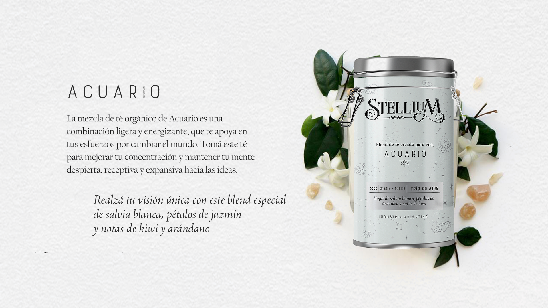 Stellium is a herbal blend tea brand crafted to complement each astrological sign's strongest qualities. Combining earth and sky in a unique blend to revitalize each constellation.